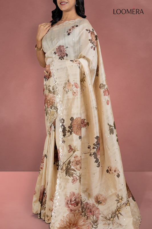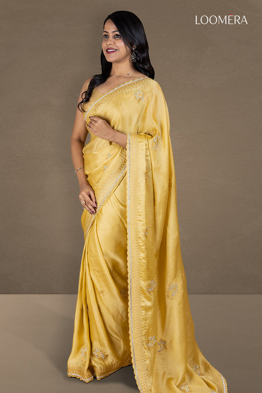 Golden Semi Silk Saree with Thread and Swarovski Border