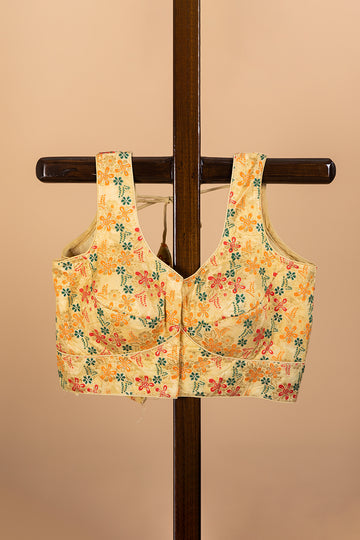 Step into elegance with this Pale Gold Floral Printed Readymade Blouse, featuring a romantic sweetheart neckline that enhances your feminine silhouette. The delicate floral print adds a touch of grace and charm, making it a versatile choice for both traditional and contemporary sarees. Perfect for festive events or casual outings, this blouse brings a soft, sophisticated glow to your overall ensemble.